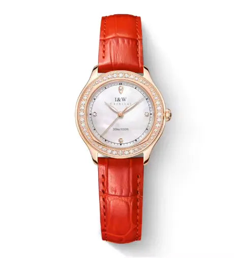 RELÓGIO DE COURO E DIAMANTE IW FEM